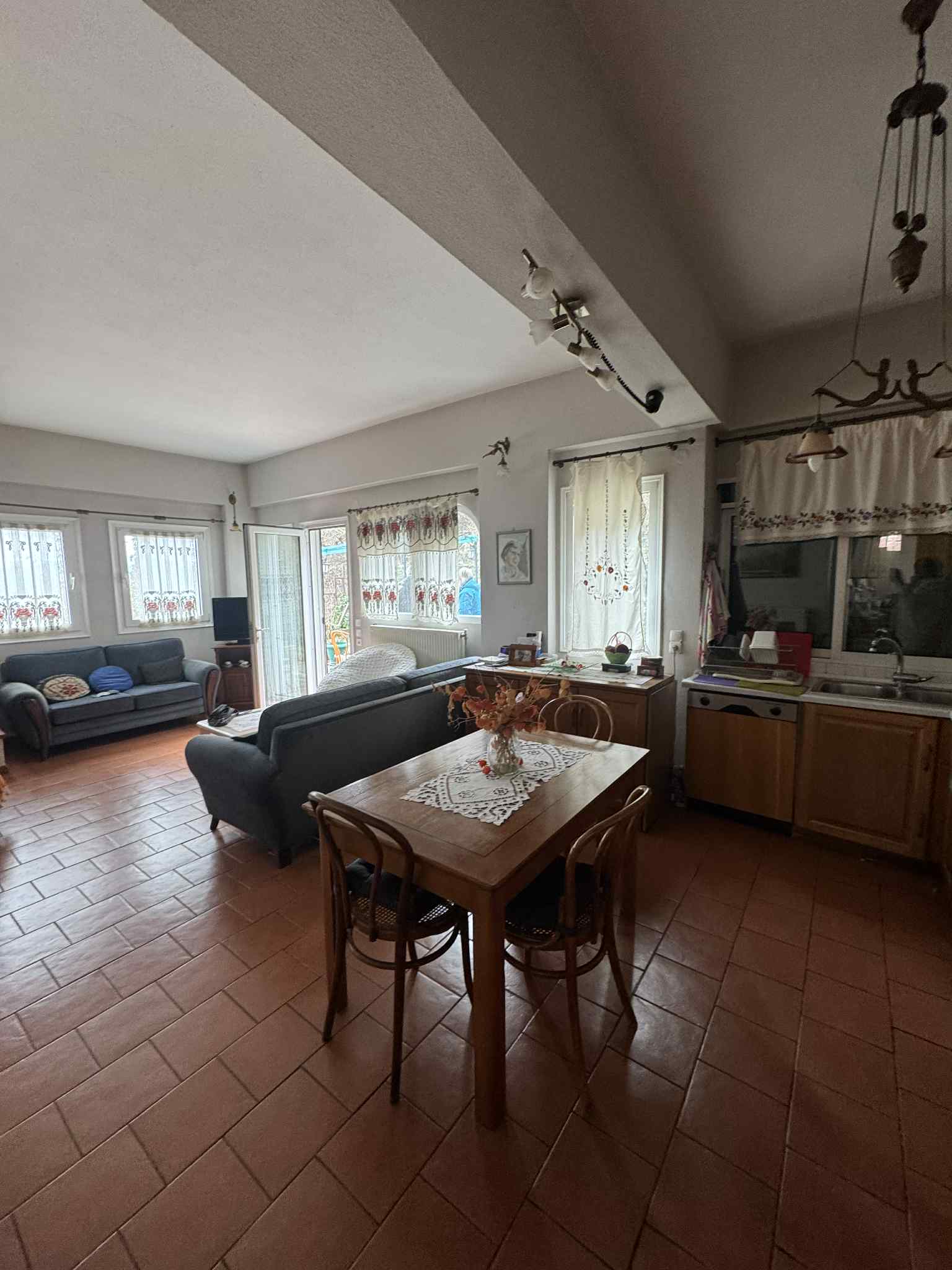 Η μονοκατοικία διαθέτει δάπεδα από πλακίδια και ενεργειακά κουφώματα με διπλό υαλοπίνακα.